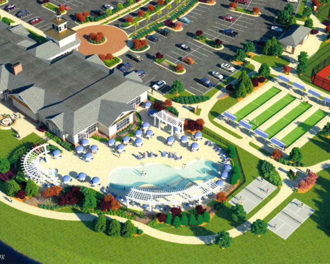 • Multiple sports facilities such as tennis, pickleball, and bocce courts.